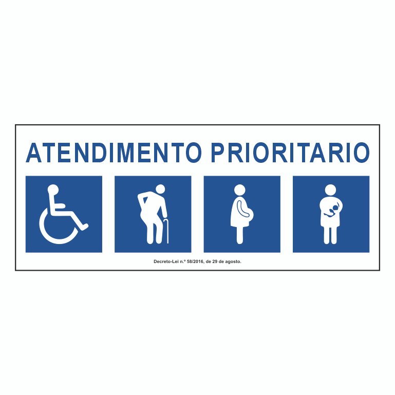 Sinal de Atendimento Prioritário, obrigatório segundo o Decreto-Lei n.º 58/2016, de 29 de agosto.